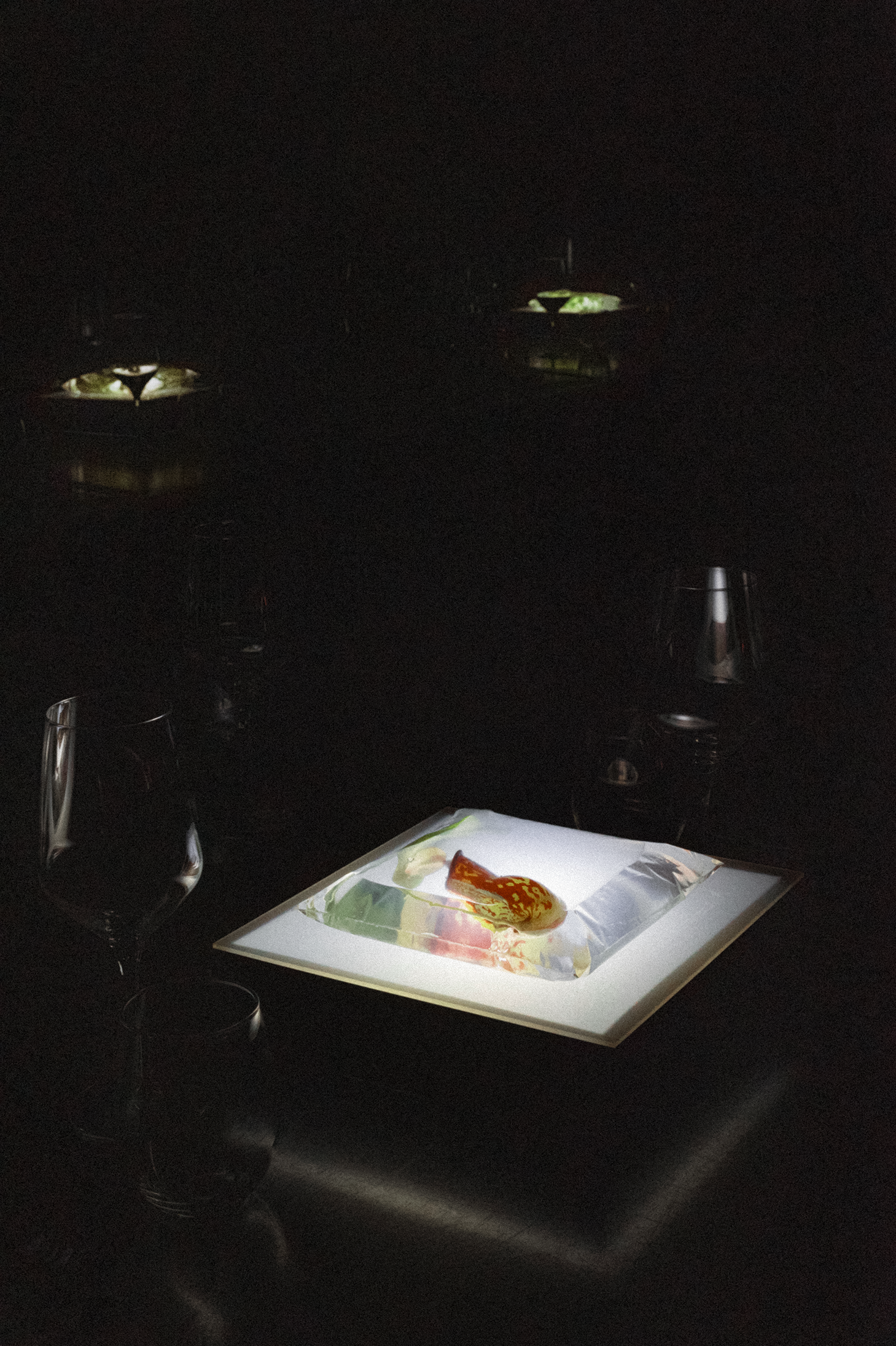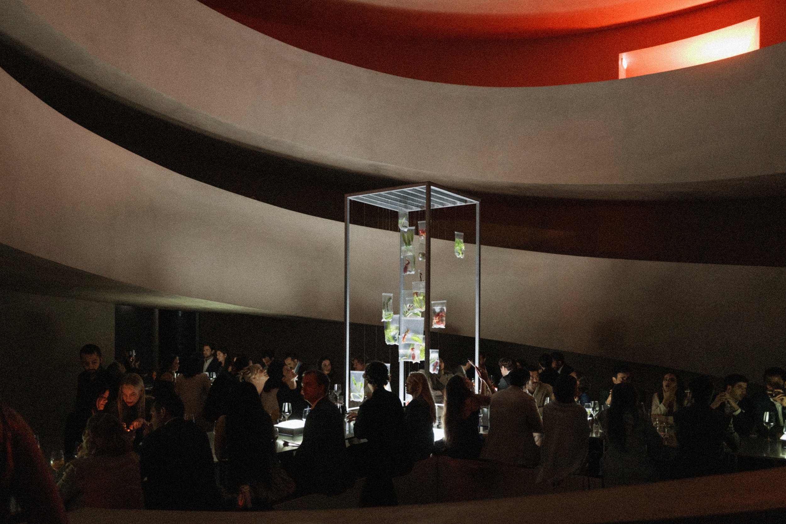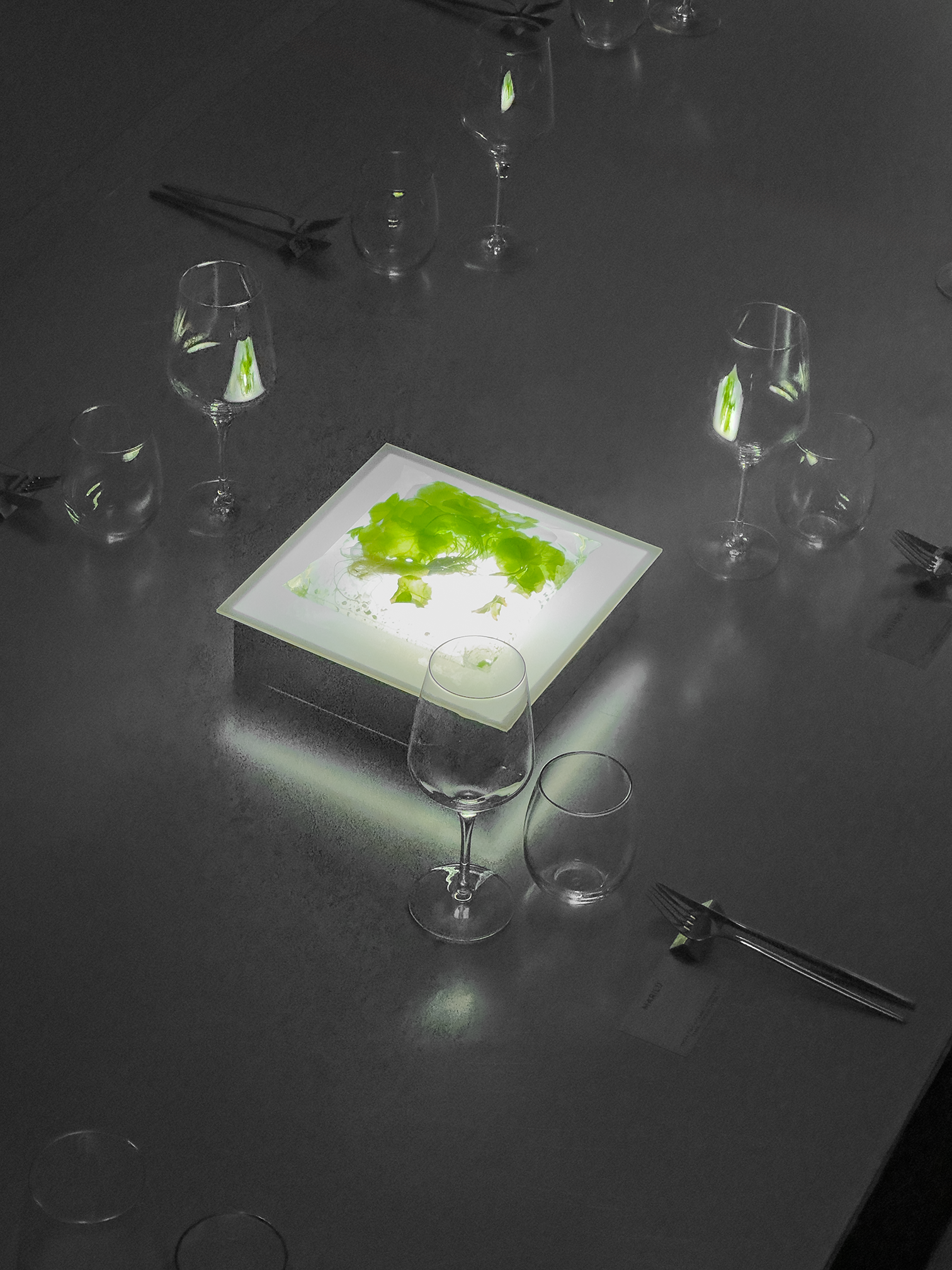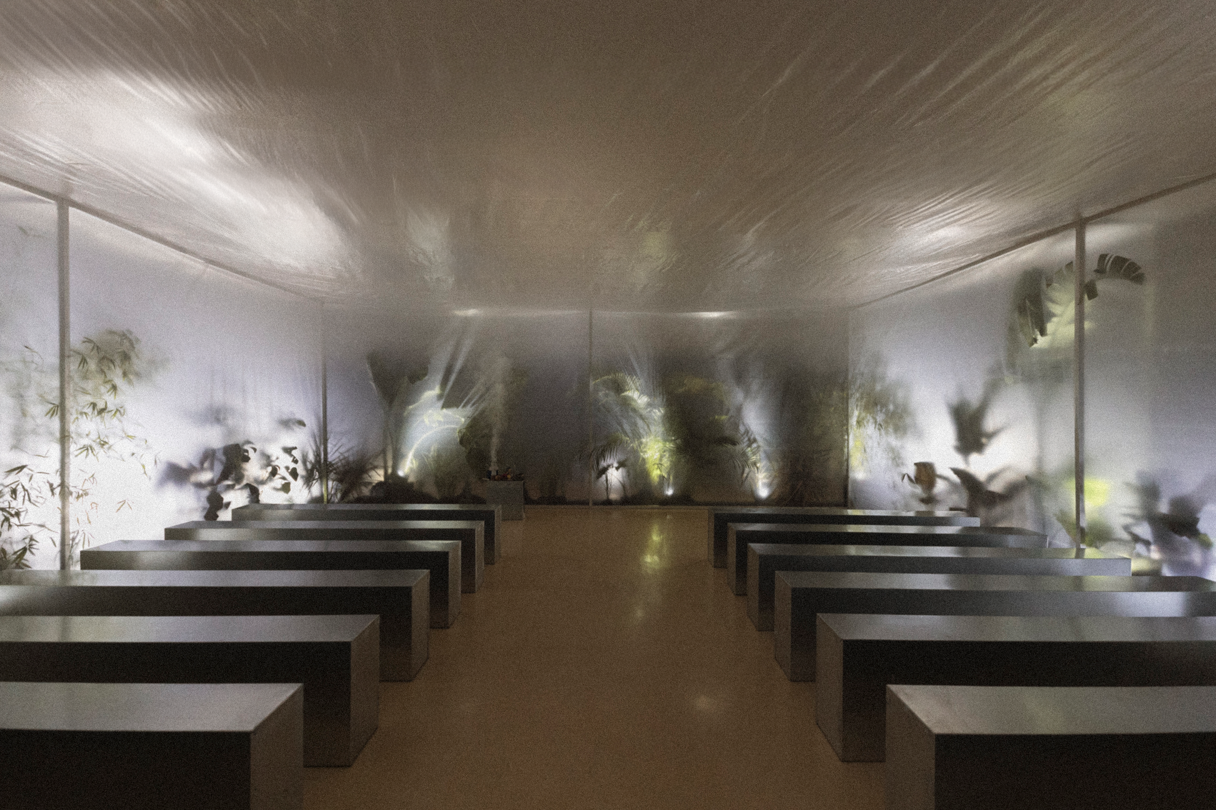 Together with Tales, we envisioned a concept that blurred the lines between nature and futurism, crafting moments that challenged perception and engaged the senses. The ceremony embraced shadows and white noise, creating a sculptural atmosphere where light and sound became a living artwork, welcoming each guest. The cocktail introduced the couple’s favourite flora, carnivorous plants, transforming the space into a surreal installation where nature’s monstrous forms invited discovery and reflection. Finally, the dinner embraced minimalism infused with a brutalist sensibility, where steel structures intertwined with aquatic and carnivorous plants, turning the table into a stage for an extraordinary dialogue between material and life.