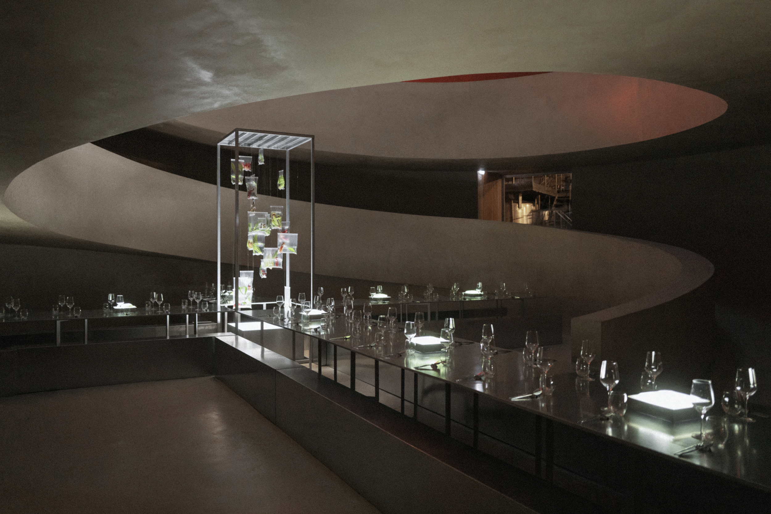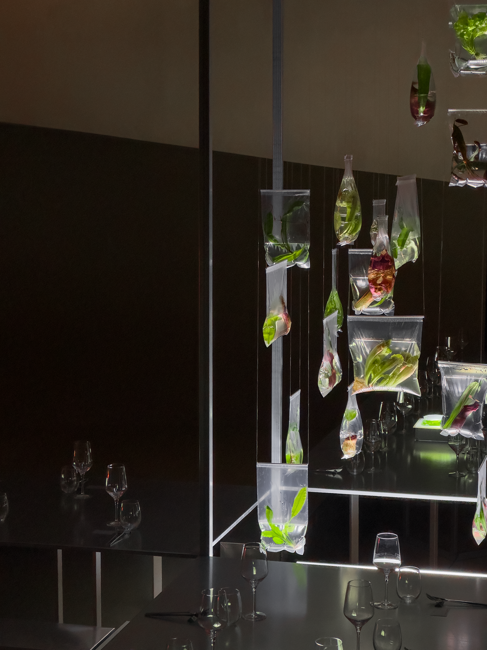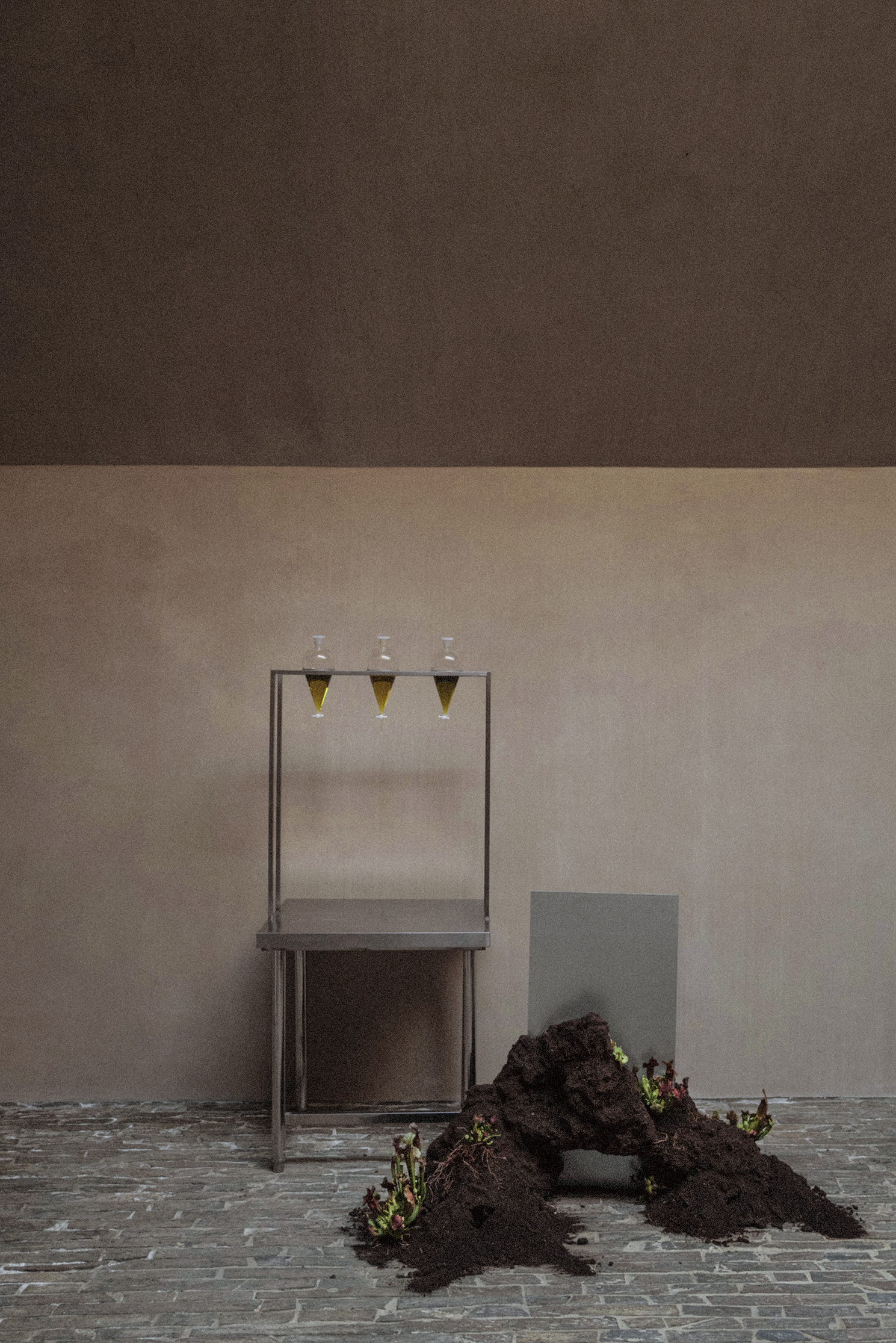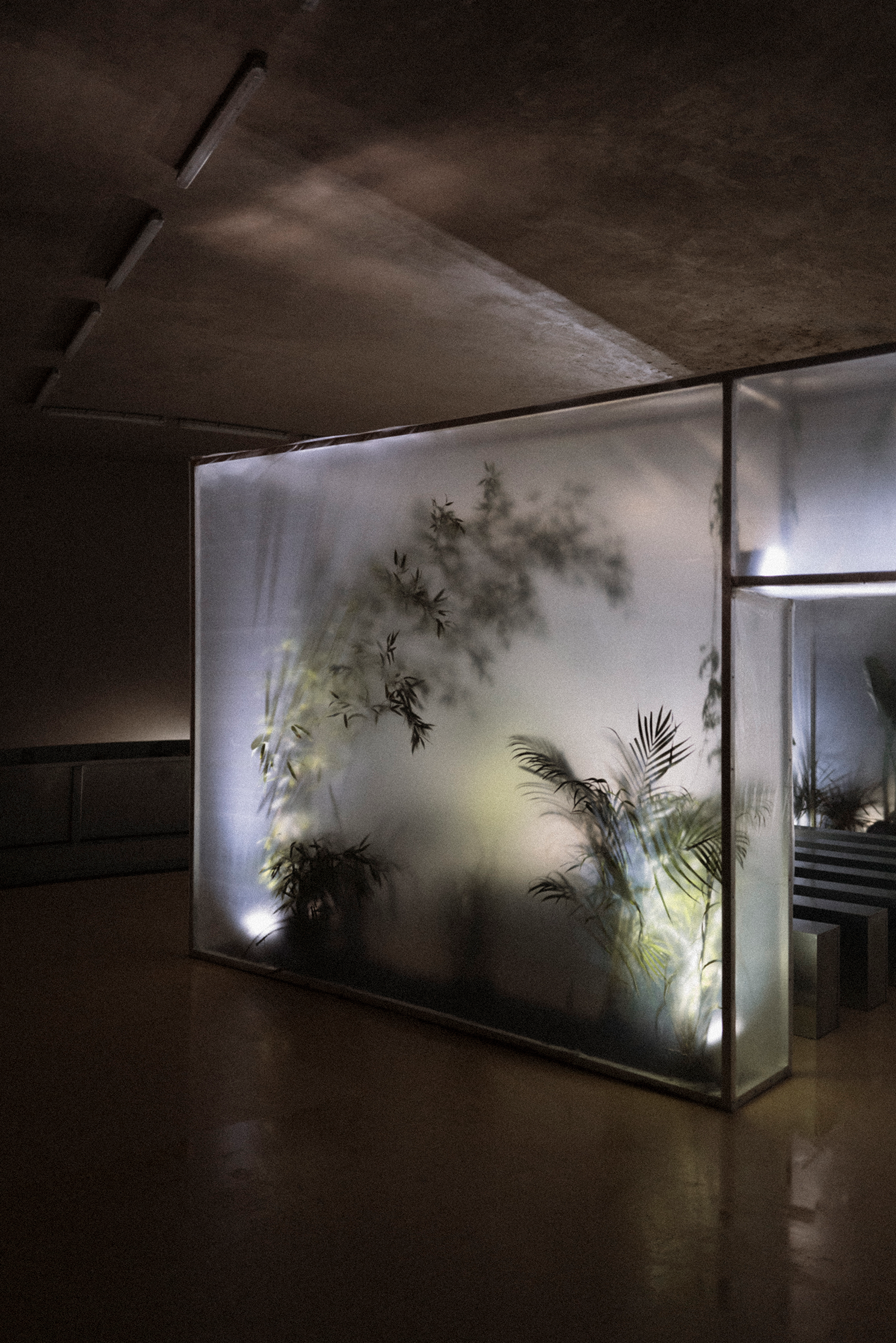 Together with Tales, we envisioned a concept that blurred the lines between nature and futurism, crafting moments that challenged perception and engaged the senses. The ceremony embraced shadows and white noise, creating a sculptural atmosphere where light and sound became a living artwork, welcoming each guest. The cocktail introduced the couple’s favourite flora, carnivorous plants, transforming the space into a surreal installation where nature’s monstrous forms invited discovery and reflection. Finally, the dinner embraced minimalism infused with a brutalist sensibility, where steel structures intertwined with aquatic and carnivorous plants, turning the table into a stage for an extraordinary dialogue between material and life.